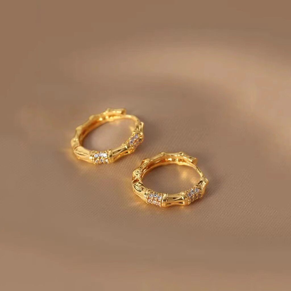 新款24K黄金耳环9999足金纯金转运珠圆圈时尚耳饰 弯针小耳钉女