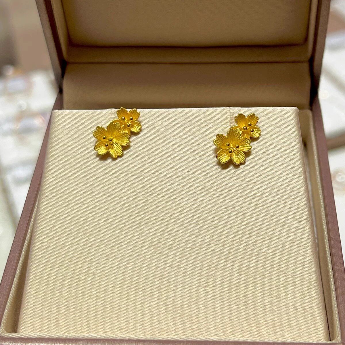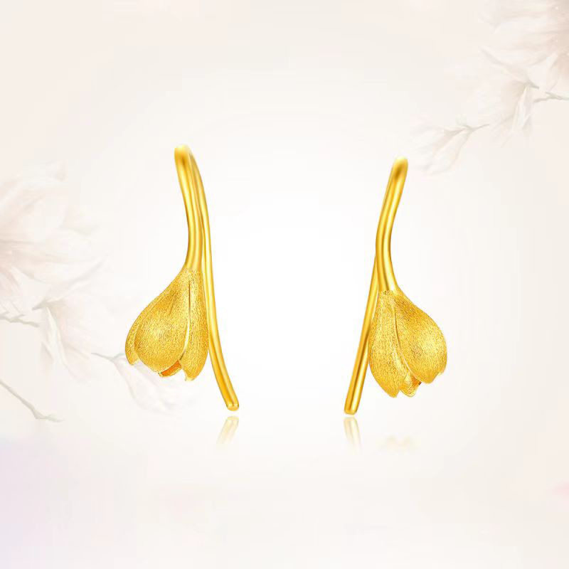 24K纯金玉兰花耳环新款气质小众999足金花苞耳钉5G黄金耳饰送女友