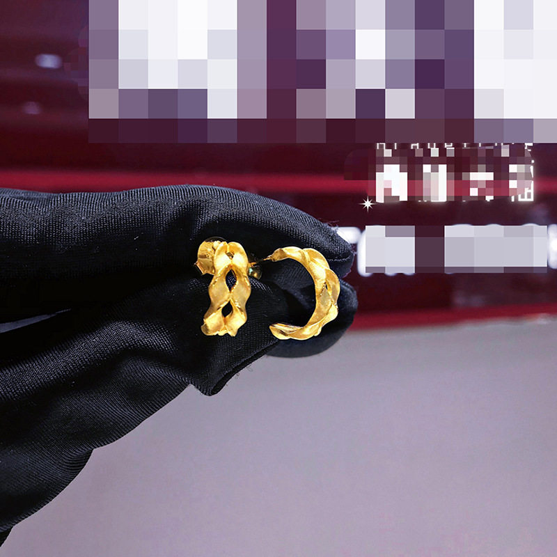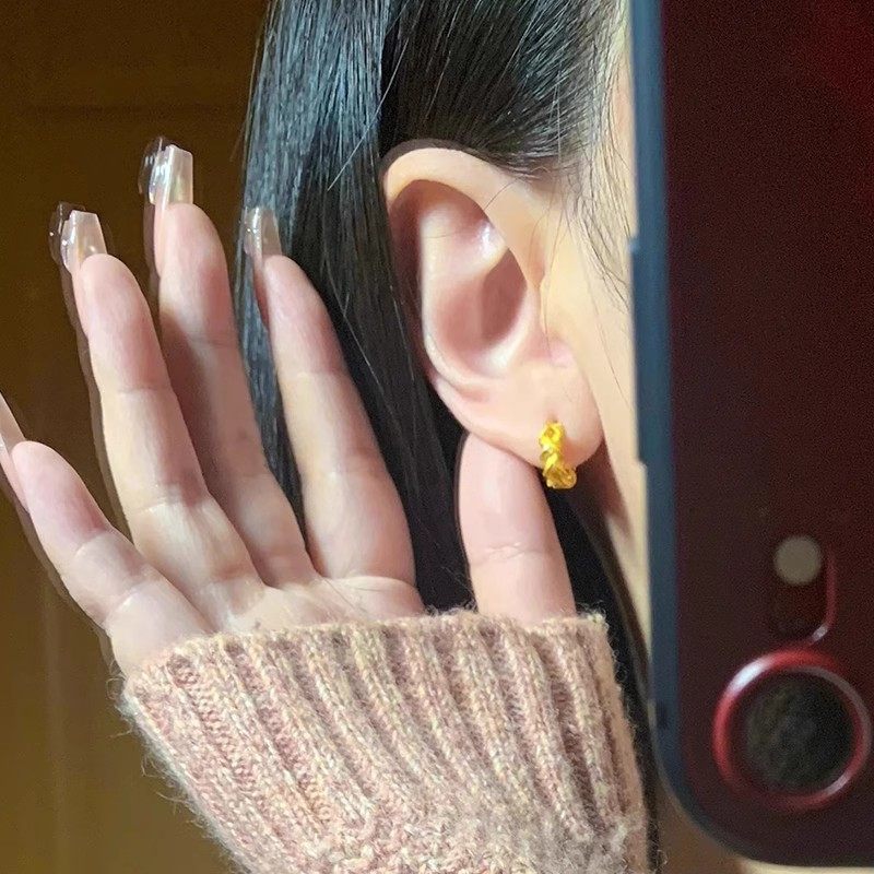 24K纯金麦穗耳钉时尚百搭5G黄金麻花弯钩耳环999足金耳钩元旦礼物