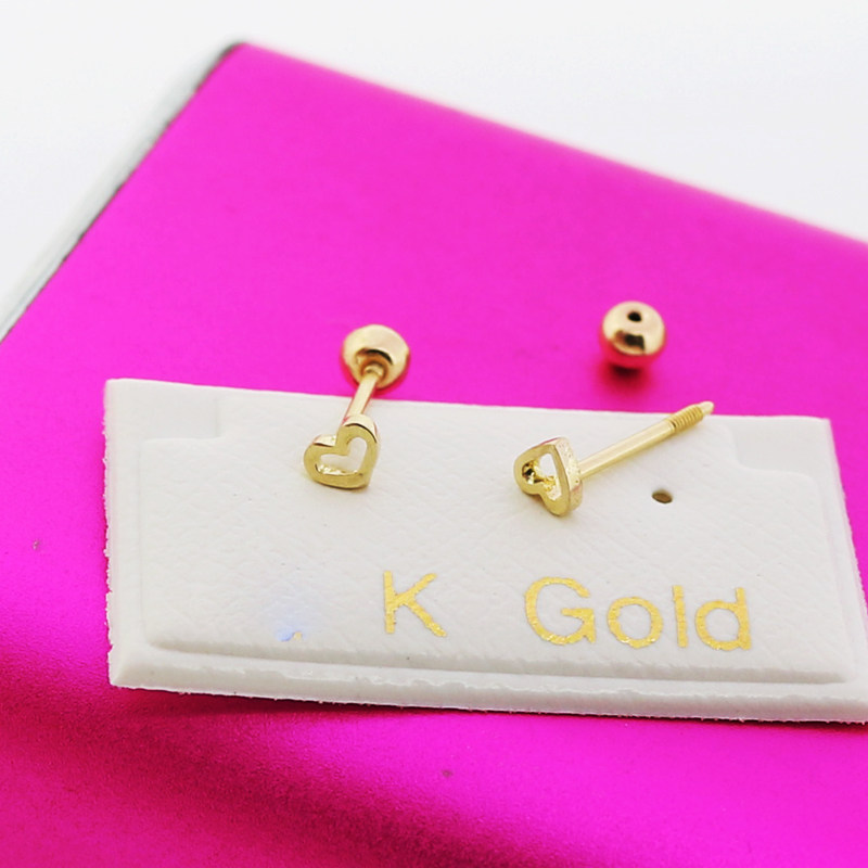 睡觉免摘韩国纯10k金黄金耳钉镂空迷你小桃心k纯金拧螺丝耳骨钉女