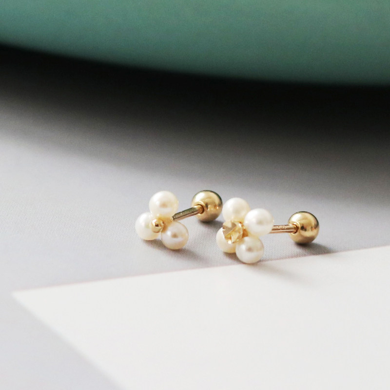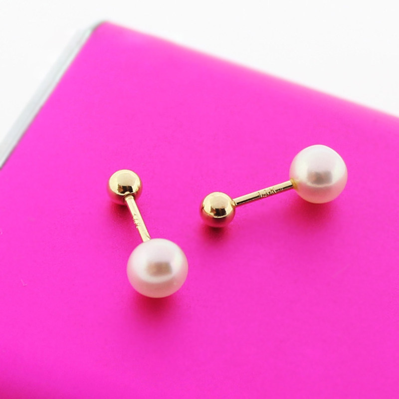 蓝莓甜心韩国纯14K金耳钉 简洁天然淡水珍珠k纯金拧螺丝耳骨钉女