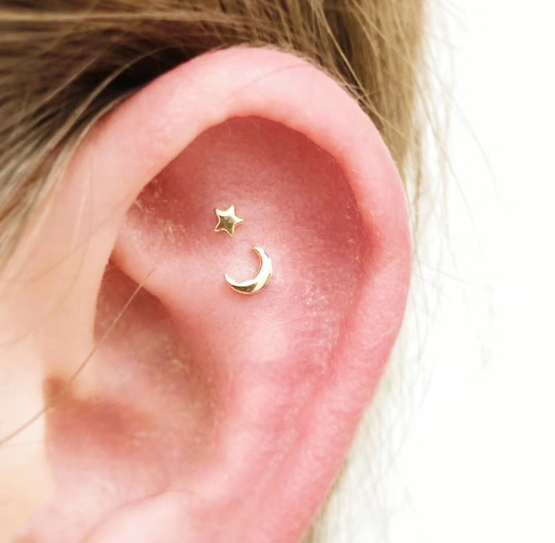 蓝莓家 韩国纯10K金黄金耳钉 个性不对称精致星月K纯金拧螺丝耳钉