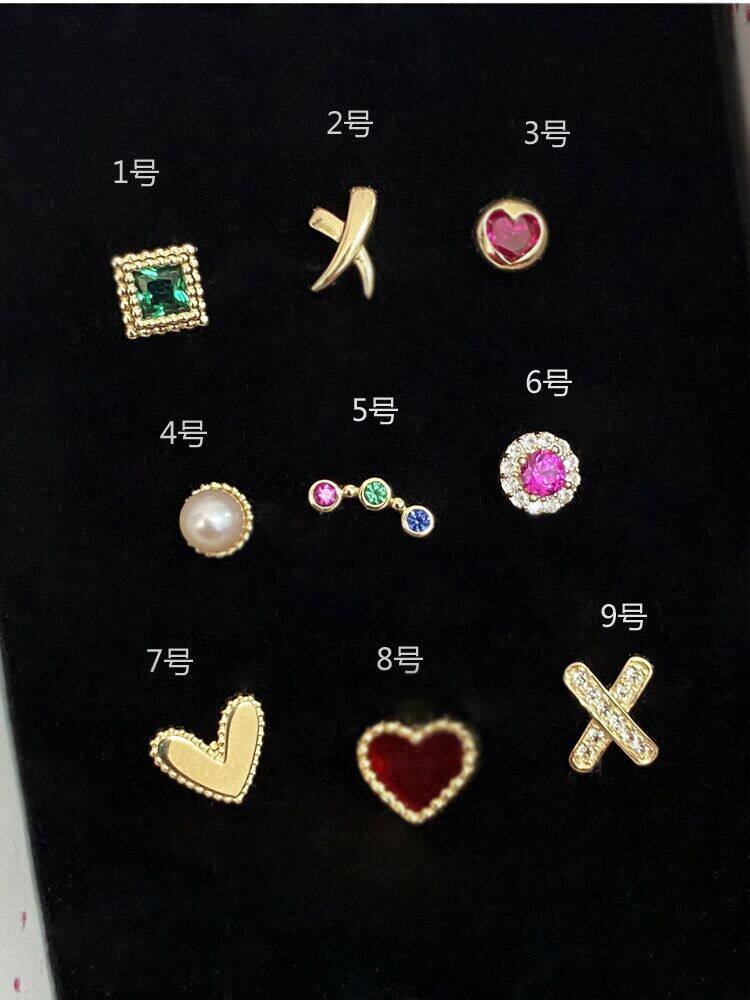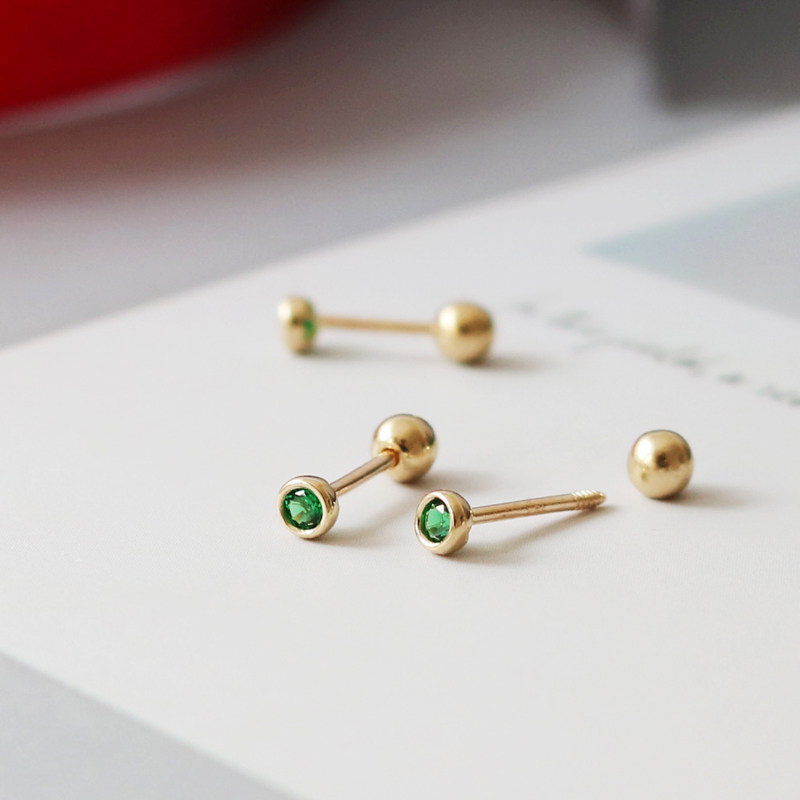 蓝莓甜心韩国纯10K金黄金耳钉 mini精致绿色包边钻K纯金耳骨钉女