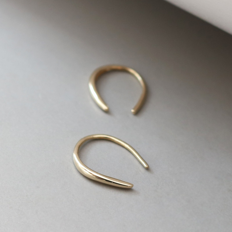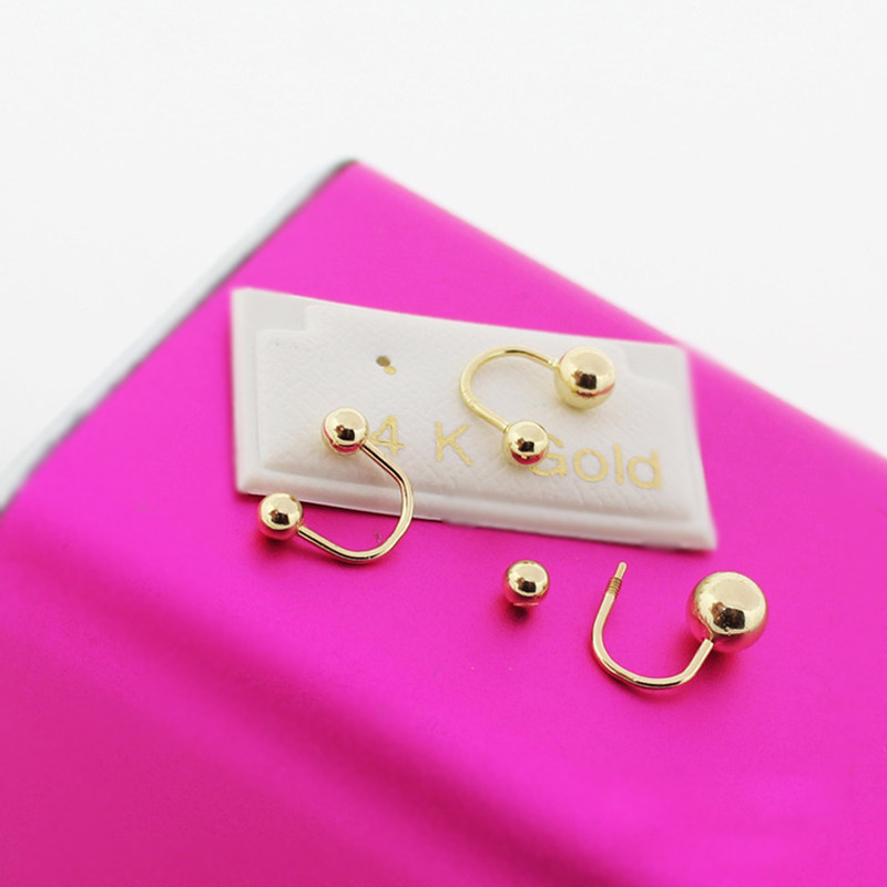 蓝莓家 韩国14K黄金耳钉 简约弯杆U型双头圆球拧螺丝K纯金耳骨钉
