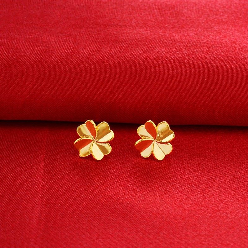 新款5G黄金蜂巢四叶草耳钉轻奢小众999足金幸运草耳环24K纯金耳饰