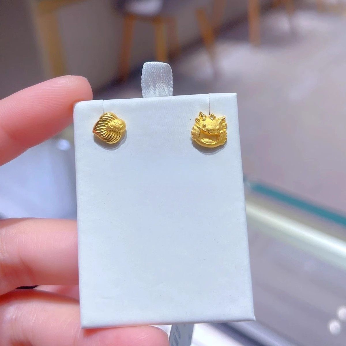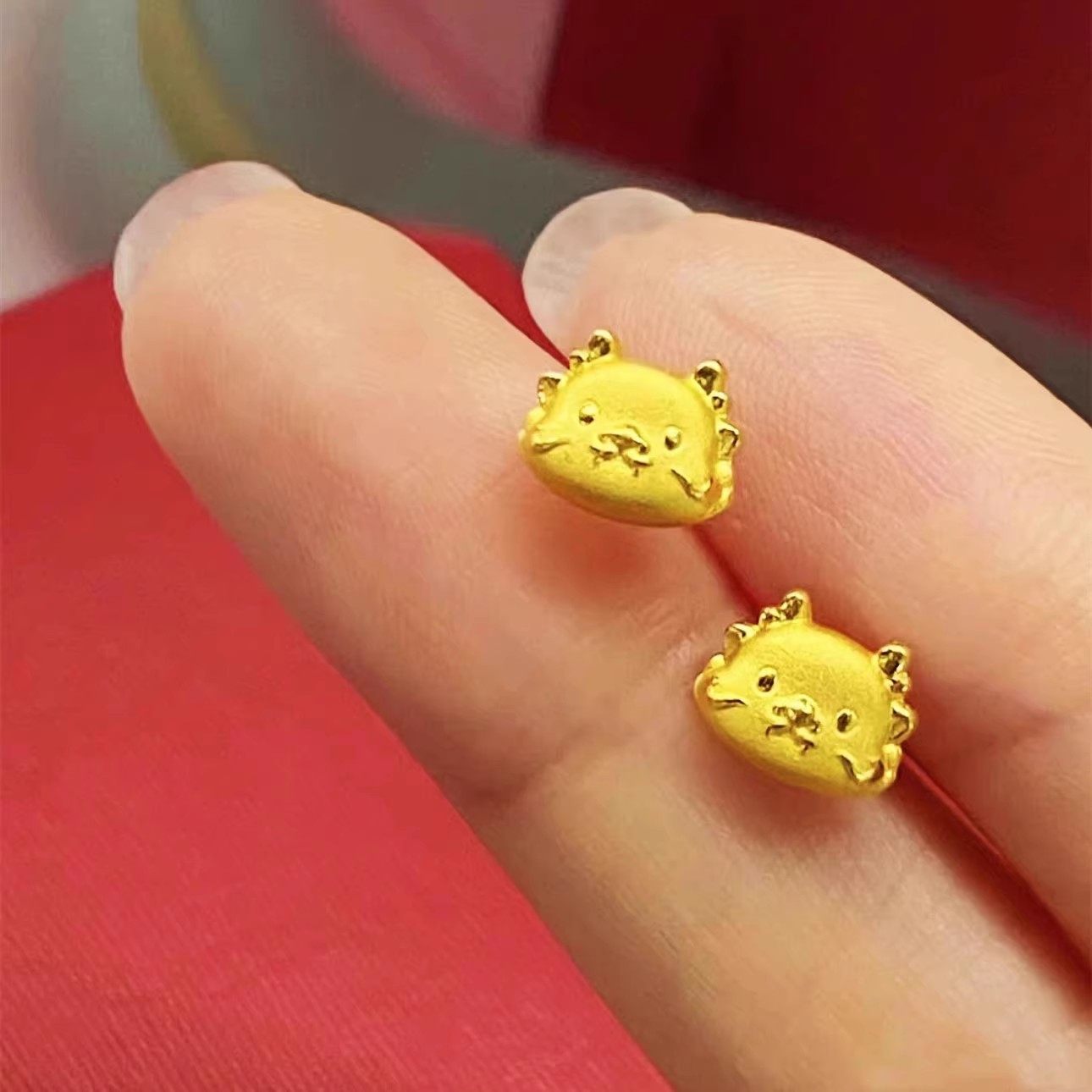 999足金不对称龙耳钉可爱时尚24K纯金祥龙耳环5G黄金龙尾耳饰新款