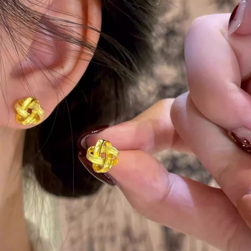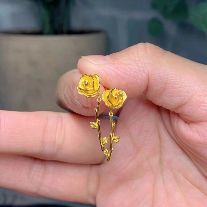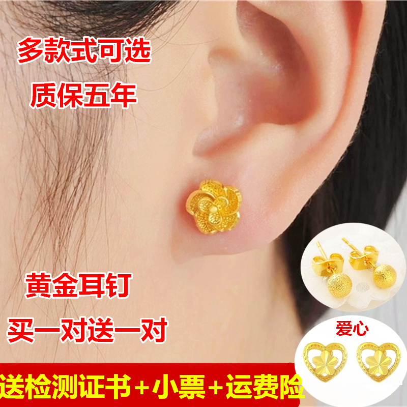 黄金耳钉女纯金玫瑰花小耳钉24K爱心豆豆磨砂耳环999足金弯钩耳饰