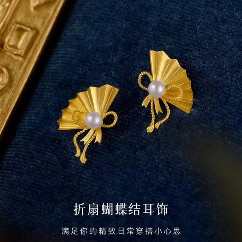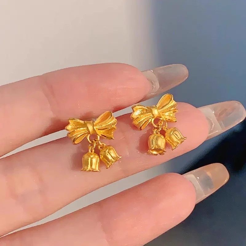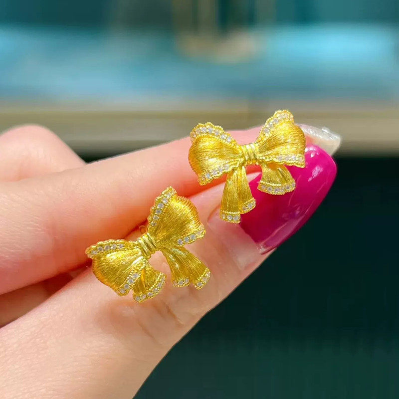 黄金在逃公主蝴蝶结耳环新款轻奢时尚24K纯金镶钻耳钉999足金耳饰