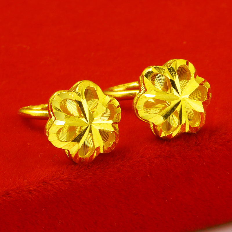 5G黄金四叶草耳钩新款24K纯金光面幸运草耳环女士999足金弯钩耳钉