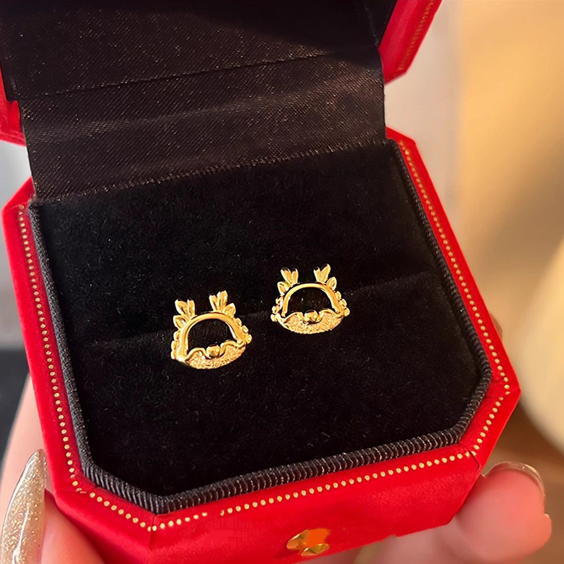 24K纯金中国龙耳环国潮气质龙年生肖耳钉黄金女款镂空999足金耳饰