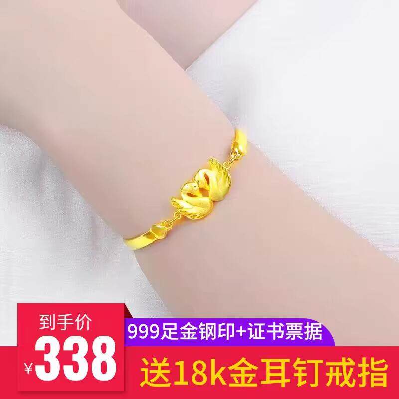 万福999黄金天鹅手镯计价 24K足金纯金手链女款送耳钉戒指送女友