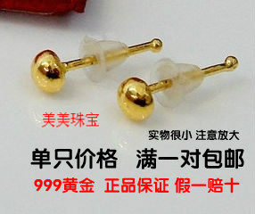 999足金黄金小耳钉纯金耳环耳针圆点耳钉小巧时尚后弯牢固防过敏